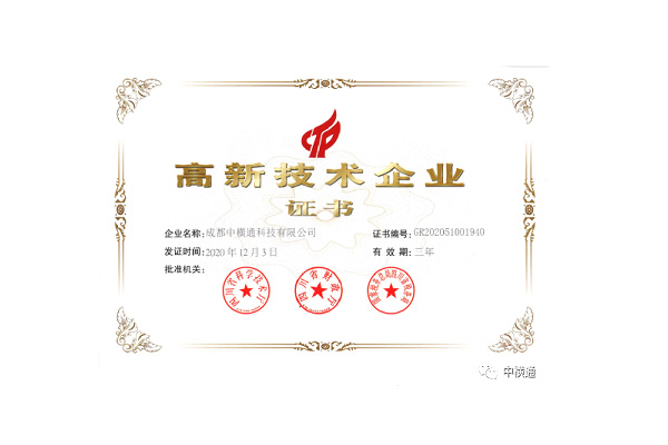 成都中橫通科技有限公司經(jīng)過17年的發(fā)展,不斷開拓創(chuàng)新,追求卓越,于2020年成功通過國家高新技術(shù)企業(yè)認定。